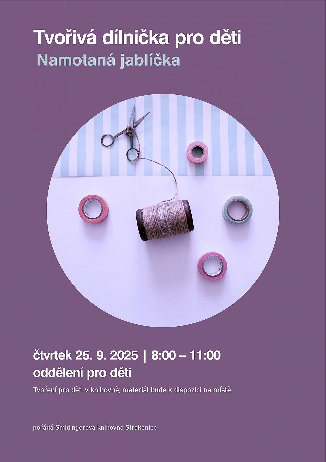 Namotaná jablíčka. Tvoření pro děti v knihovně, materiál bude k dispozici na místě.