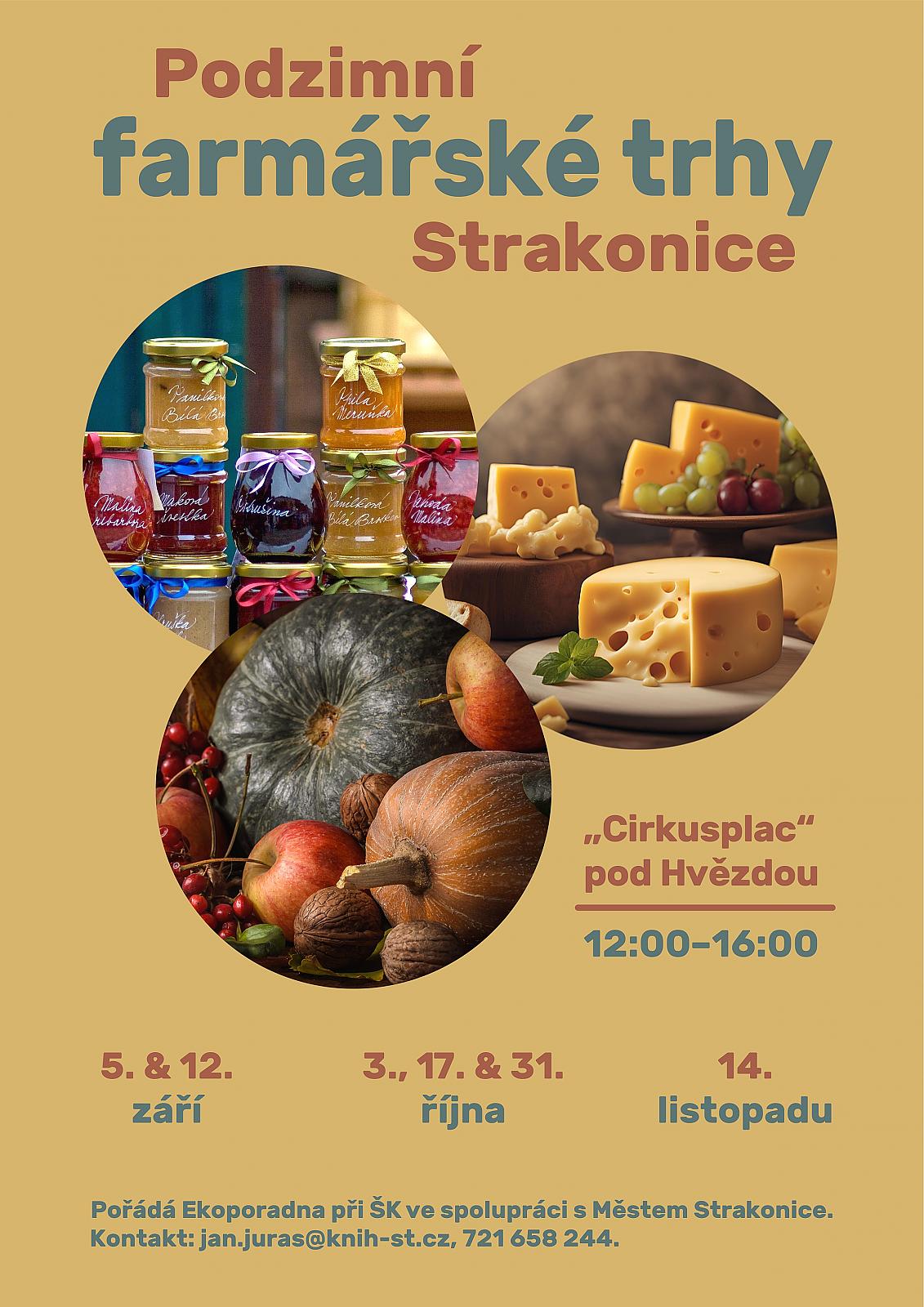 Bližší informace a seznamy přihlášených prodejců na webu: http://farmarsketrhy.strakonice.eu/. Pořádá Ekoporadna při ŠK ve spolupráci s Městem Strakonice.