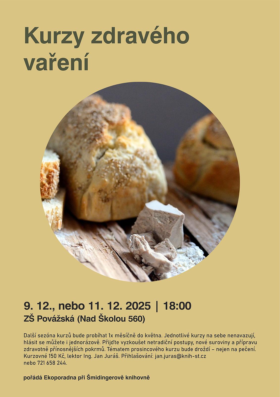 Přijďte vyzkoušet netradiční postupy, nové suroviny a přípravu zdravotně přínosnějších pokrmů. Tématem prosincového kurzu bude droždí – nejen na pečení.