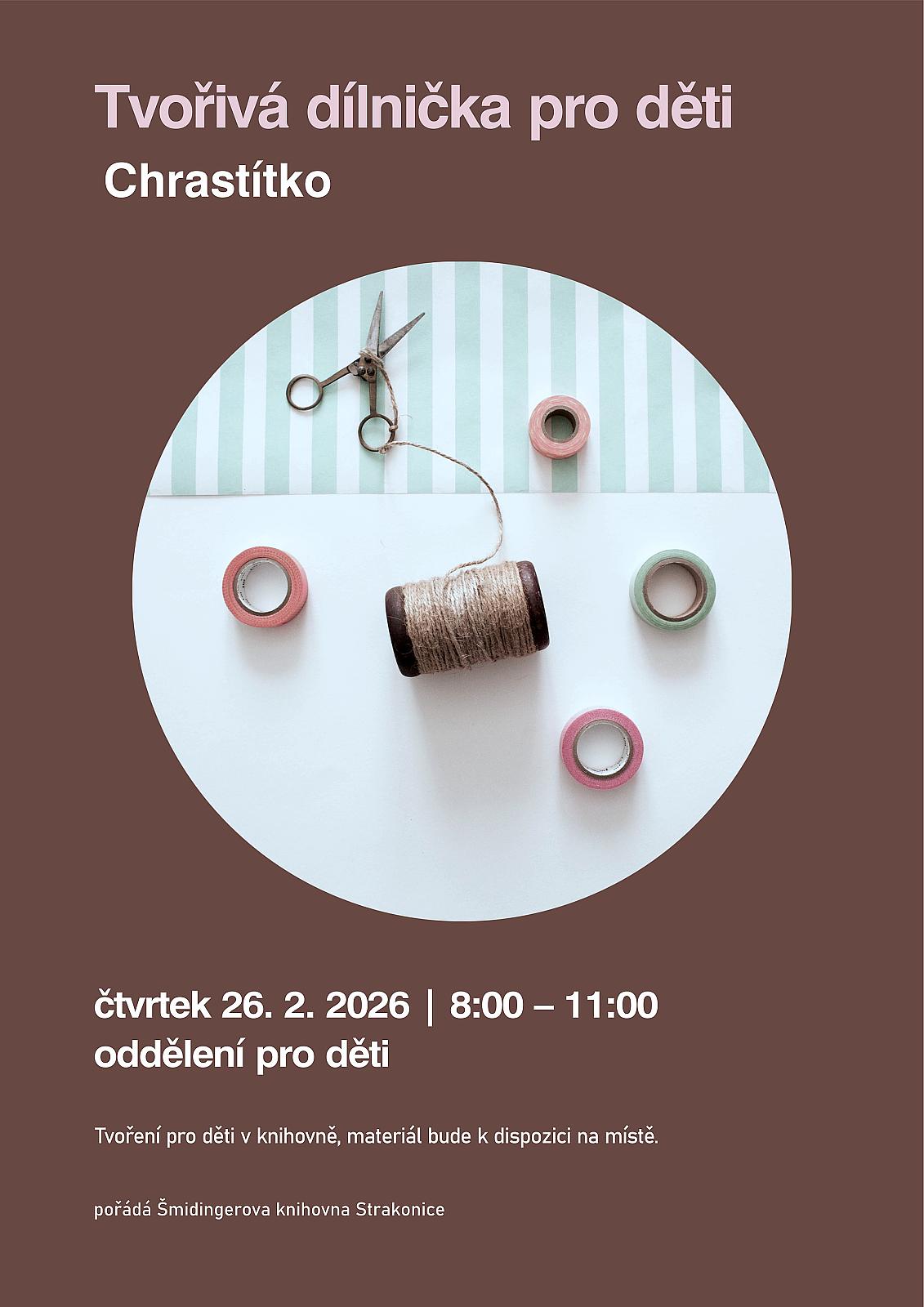 Chrastítko. Tvoření pro děti v knihovně, materiál bude k dispozici na místě.