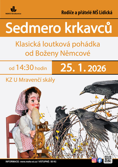 Klasická loutková pohádka Boženy Němcové v podání Rodičů a přátel MŠ Lidická. Začátek 25.01. ve 14:30, vstupné 50 Kč - vstupenky k zakoupení pouze na místě.