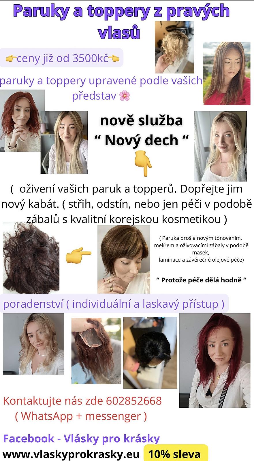 Nabízím ručně upravované paruky a toppery z kvalitních pravých vlasů za velmi příznivé ceny.
