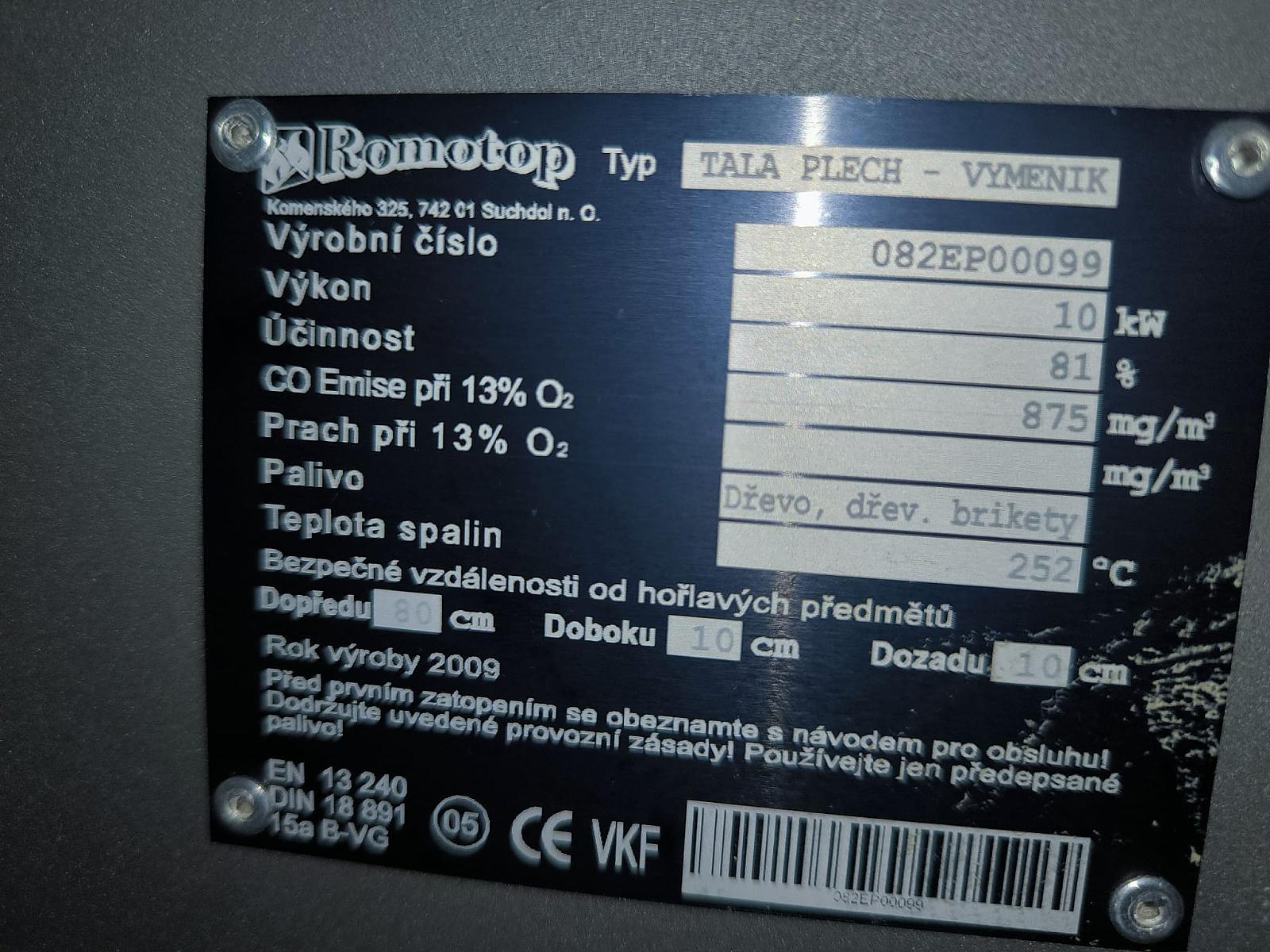 Prodám zachovalá krbová kamna ROMOTOP 1500,- Kč, parametry viz obrázek. Strakonice