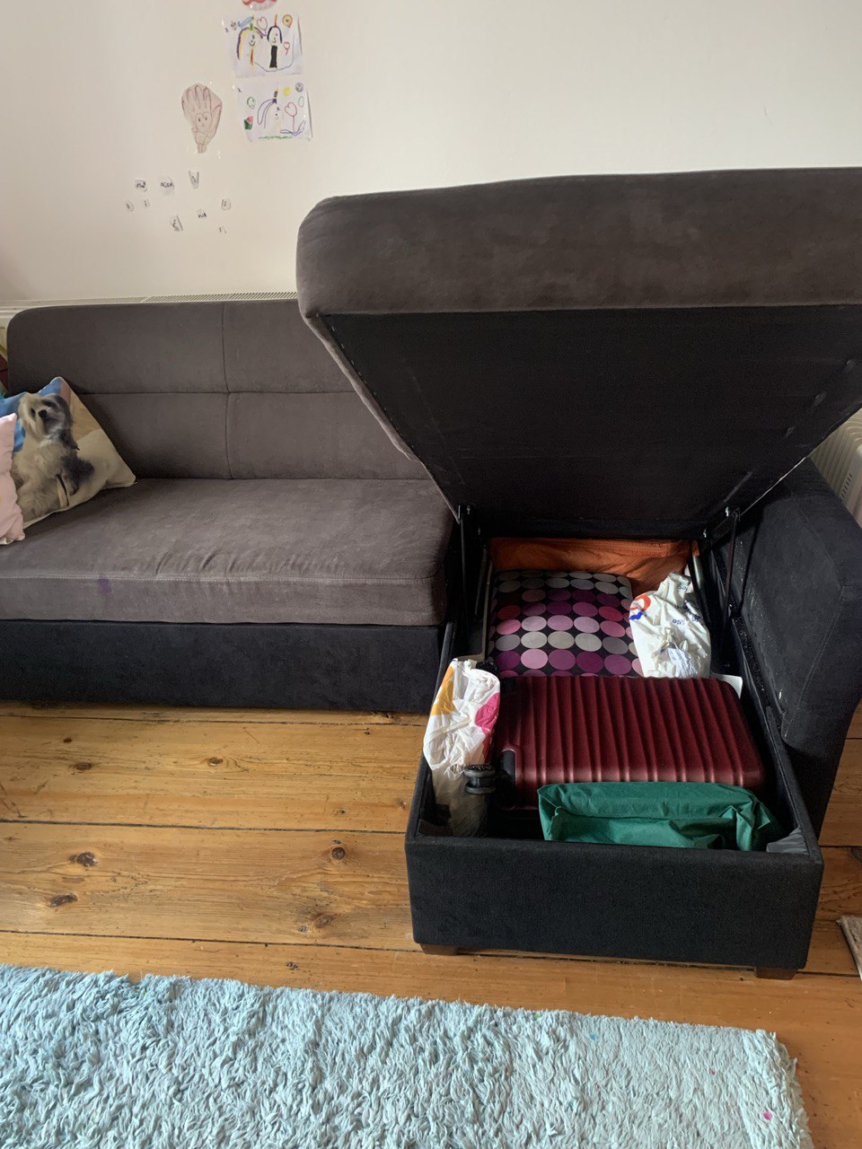 Je tam velmi pohodlná pohovka ve tvaru L. Postel lze rozložit a vytvořit tak další lůžko, a pod postelí je také dostatek prostoru na uložení zavazadel a dalších věcí.