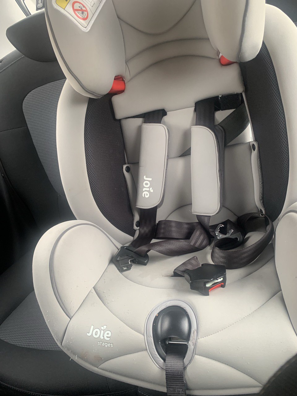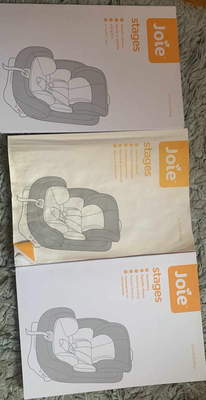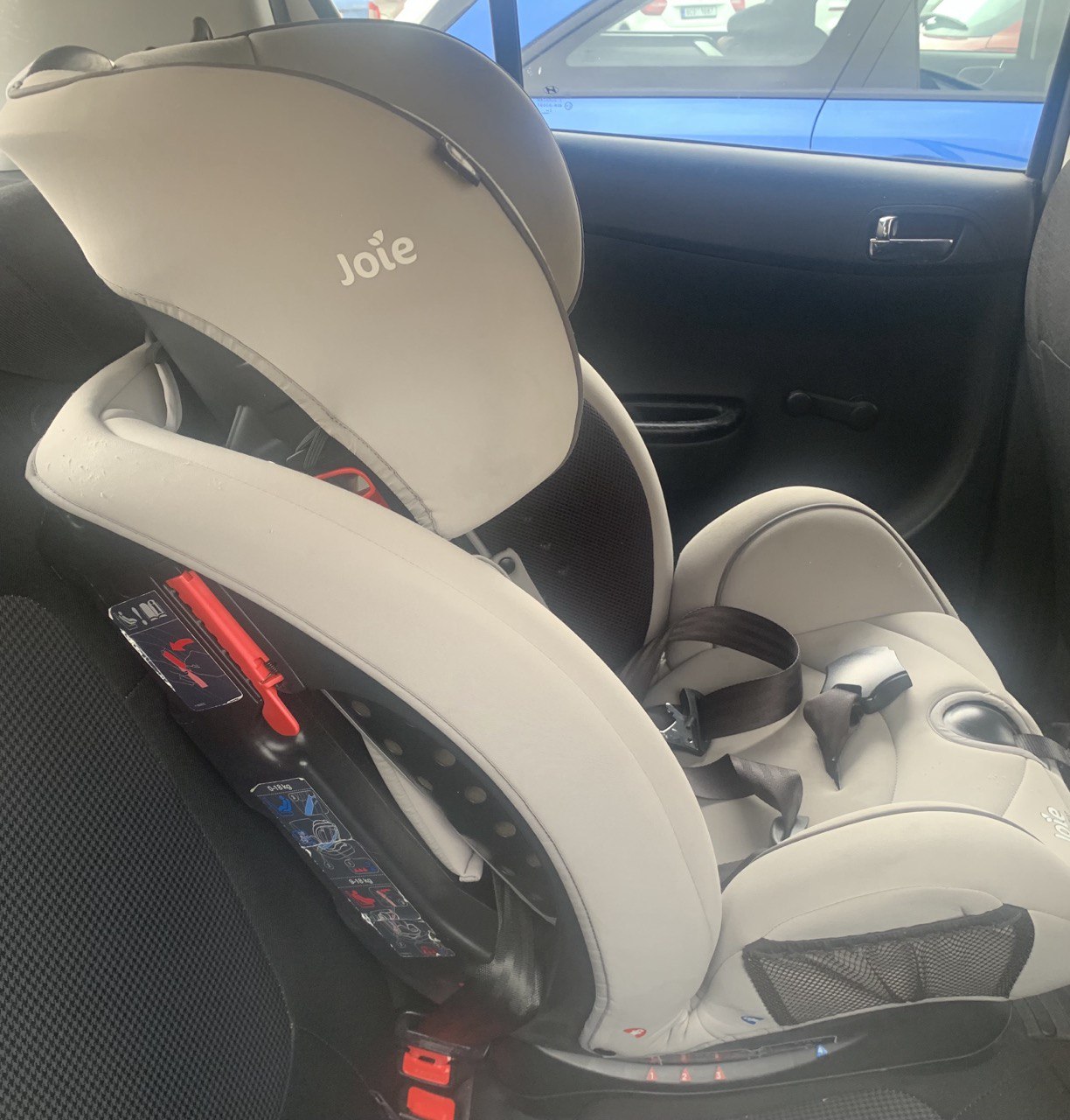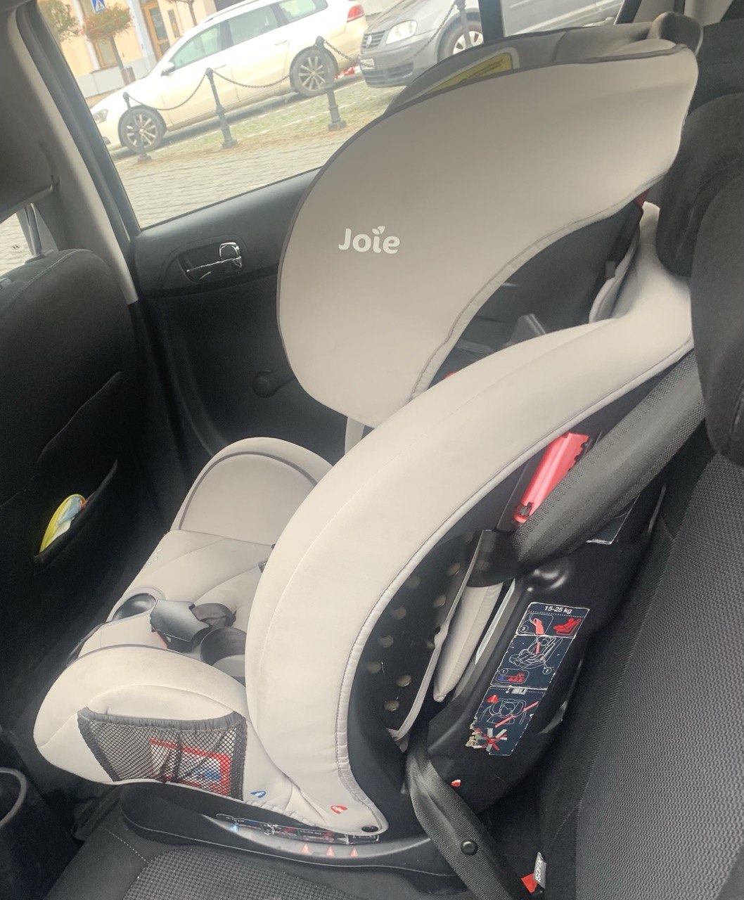 Dětská autosedačka je čistá a bez poškození. Je vhodná pro dítě do 25 kg. Lze ji přepnout do tří různých poloh. Značka je Joie. Dám katalog, abyste věděli, jak ji používat.