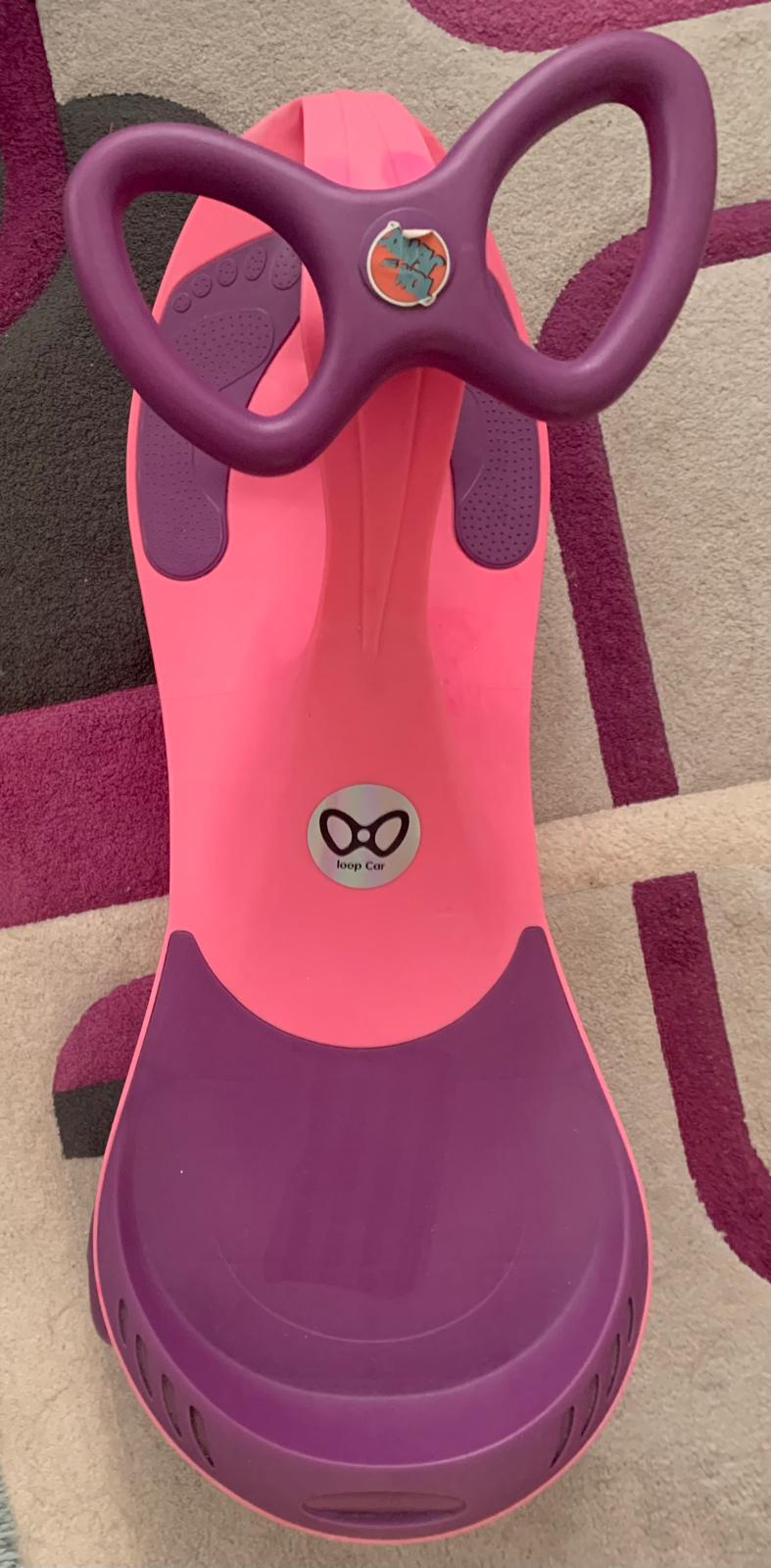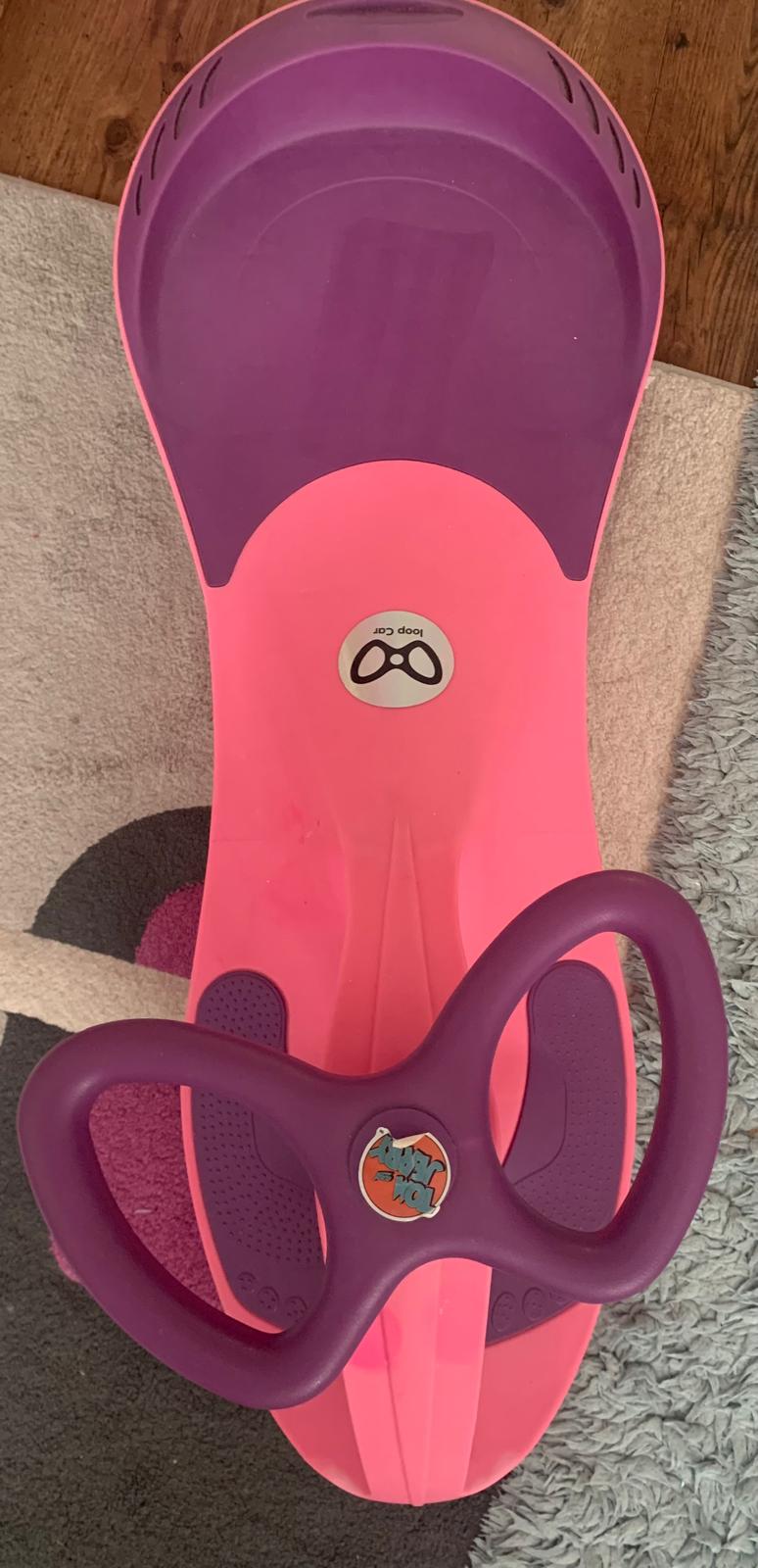 Zářivé růžovo-fialové auto Loop ve skvělém stavu – ideální pro děti, které si rády bezpečně projíždějí uvnitř i venku!
